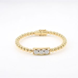 Yellow Gold And Diamond Bead Slide Bracelet$3,275.00$3,275.00 18kt yellow gold bead slide bracelet. Magnetic closing with two safeties on either side. Round,square and flower diamond moving pieces. 23 diamonds- .40cts. G-H color. VS2-SI1. Also have pink and white gold available. Contact Us