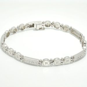 Rectangle & Circle Bracelet$3,175.00$3,175.00 18kt rectangle and circle flexible bracelet. 18kt white gold. 45 diamonds-.45cts H-I color VS2-SI1 4.5-5.5mm 7'' wrist size. $3175 Contact Us