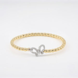 Butterfly bead bracelet$2,900.00$2,900.00 18kt yellow and white gold butterfly bead bracelet. Can be made to different wrist sizes. 40 diamonds-.40cts. G-H color. VS1-VS2. 17 1/2mm long and 10 1/2mm wide. $2,900 Contact Us
