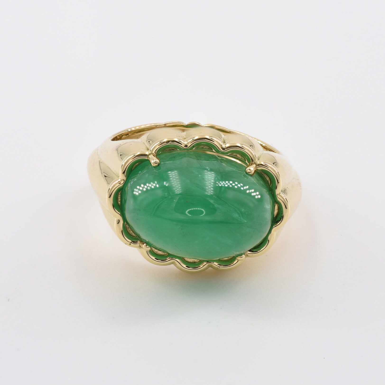 Beautiful green cabochon Emerald ring.