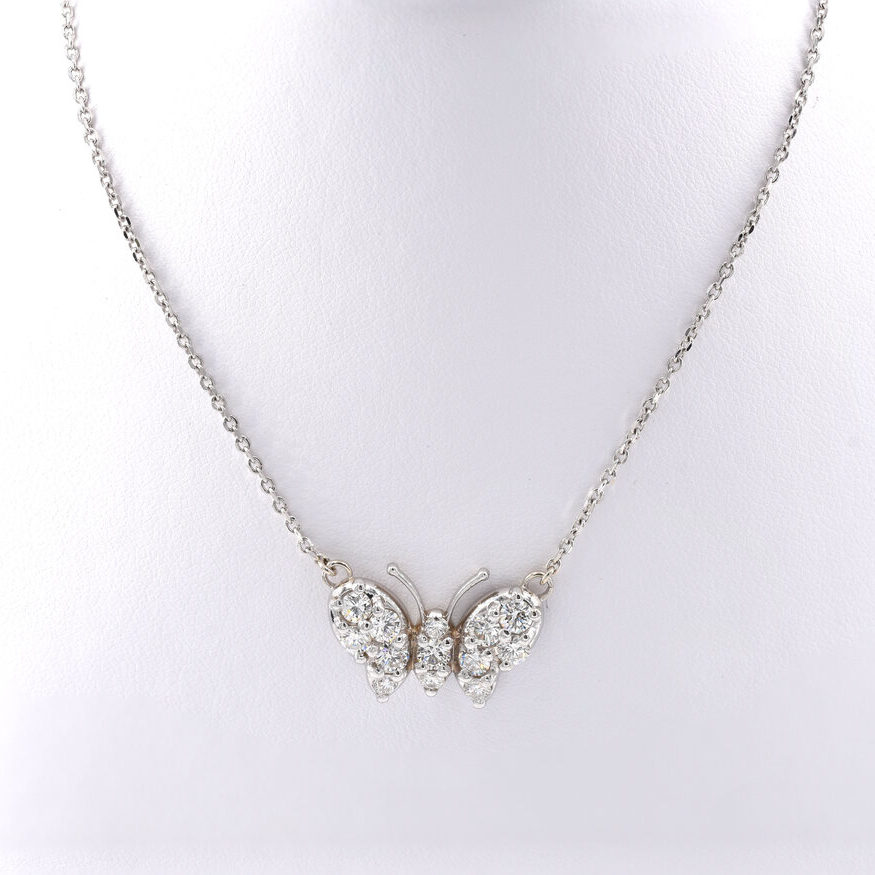 18kt white gold large butterfly necklace with 14kt white gold chain.