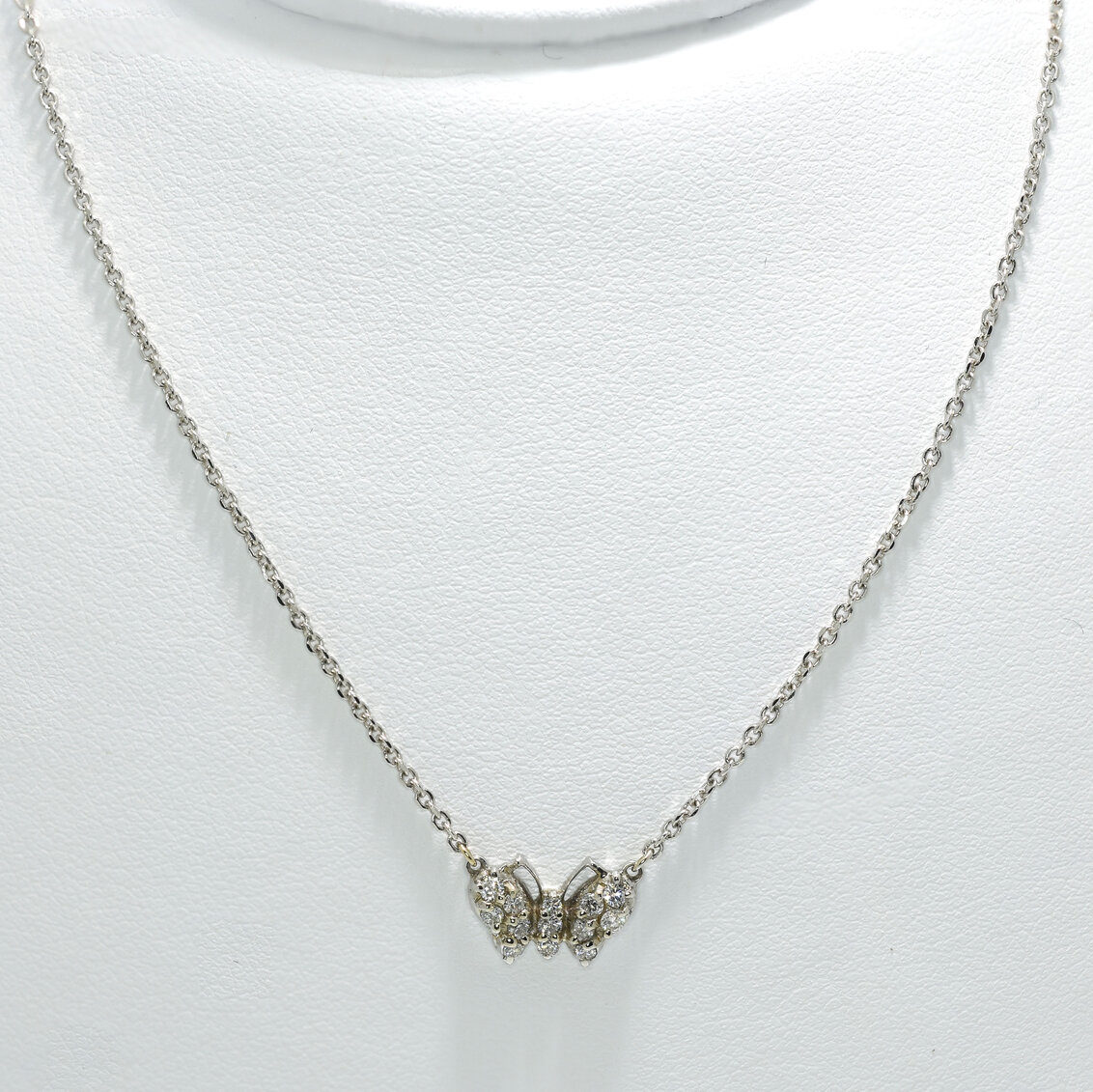 Small diamond butterfly pendant- 18kt white gold.