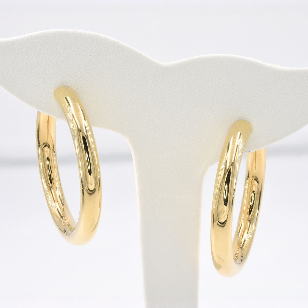18kt yellow gold hoops.