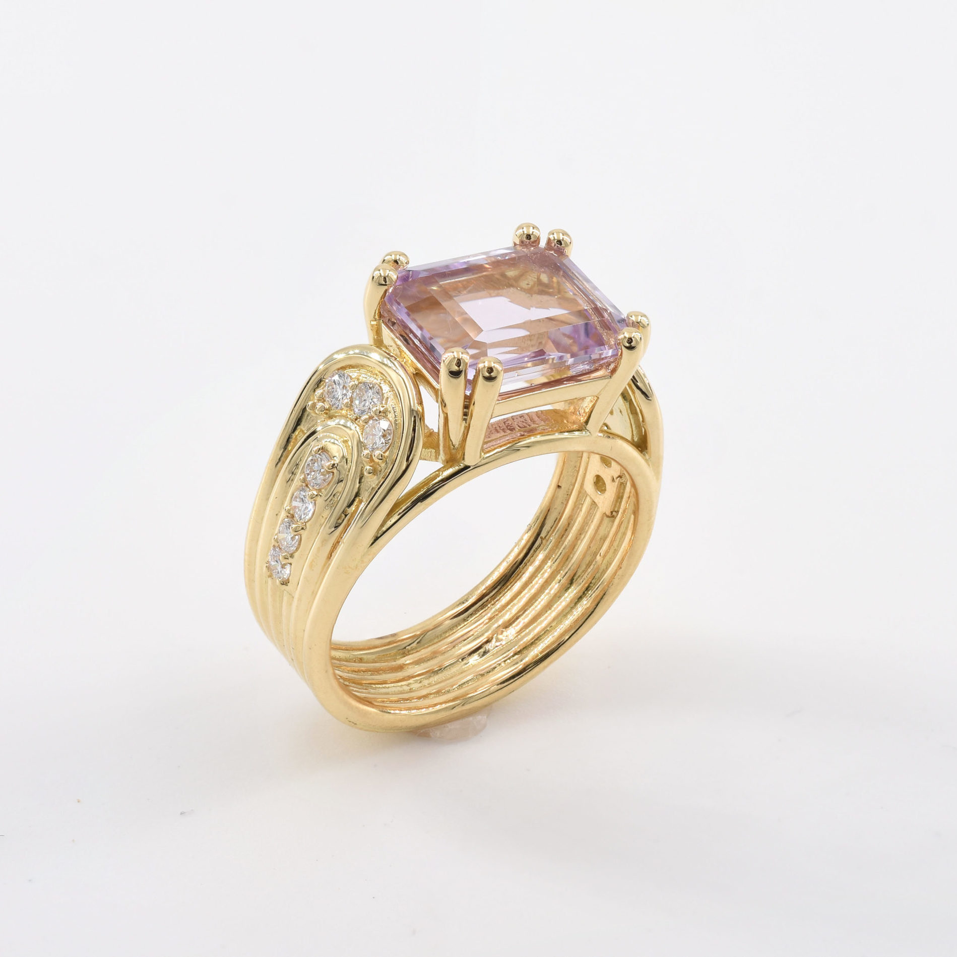 18kt yellow gold. Amethyst- 5.84cts. 14 diamonds- .54cts.