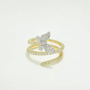 Diamond Butterfly Spiral Ring$3,300.00$3,300.00 Diamond butterfly spiral ring 18kt yellow and white gold. 75 dia- .85cts H-I color VS2-SI1 Butterfly 12.1mm X 10mm Ring 20mm wide. Size: 6 1/2 can be sized. $3,300 Contact Us