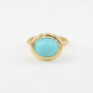 Turquoise Gold Ring$925.00$925.00 18kt yellow gold Turquoise oval ring. Top of ring-16.5mm X 14.5mm Any ring can be sized to fit. Contact Us