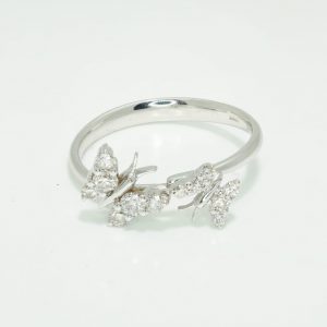 Diamond Double Butterfly Ring$1,000.00$1,000.00 Diamond double butterfly ring 18kt white gold. 12 dia- .38cts H-I color VS2-SI1 8.5mm X 6.2mm Size: 7 Any ring can be sized to fit. $1,000 Contact Us