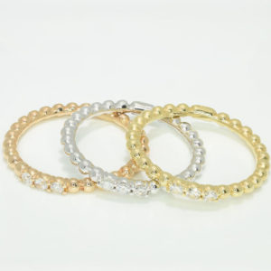 3 Beaded Diamond Rings$1,800.00$1,800.00 White gold diamond bead ring-18kt white gold. 3 dia- .14ct G-H color VS1-VS2, 2mm size 6 1/2 (can be sized) $600 Yellow gold diamond bead ring-18kt yellow gold. 3 dia- .14ct G-H color VS1-VS2, 2mm size 6 1/2 (can be sized) $600 Pink gold diamond bead ring-18kt pink gold.…
