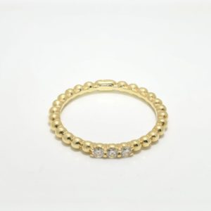 Diamond Bead Ring in yellow gold$600.00$600.00 Yellow gold diamond bead ring 18kt yellow gold. 3 dia- .14ct G-H color VS1-VS2 2mm size 6 1/2 (can be sized) $600 Contact Us