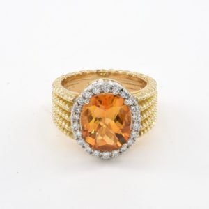 Citrine And Diamond twisted rope Ring$6,750.00$6,750.00 18kt yellow gold Citrine diamond twisted rope ring. 5ct citrine oval (honeycomb cut). 22 round diamonds-.66cts. 18 tapered baguettes- 2.50cts. G-H color. VS1-VS2. Size: 6 1/2. Any ring can be sized to fit. Contact Us